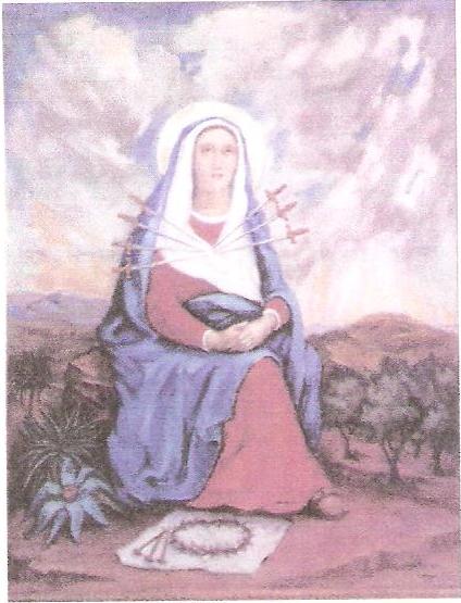 | Il quadro della Madonna dei Sette Dolori trafugata nel 1981 | Il dipinto della Vergine Addolorata, 1982 di Filandro Lattanzio |